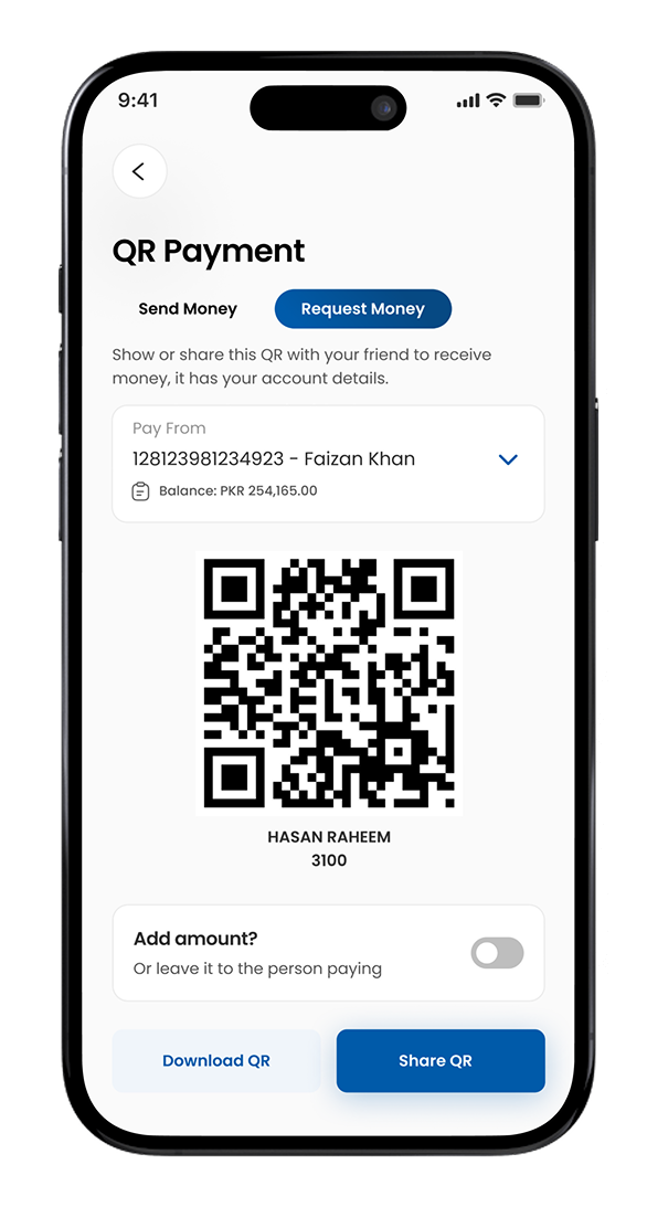 MCB Live allows you to perform fund QR transfers and payments with ease. Simply scan the QR code to transfer funds or generate and share QR payment requests.